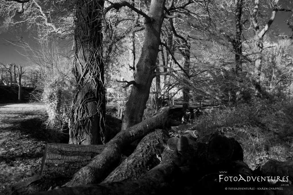The below images were taken in infrared jpegs, and I have used Lightroom to convert to black and white. The original images had a sort of sepia feel to them, I will most likely upload another post with an Infrared post completely unedited as I do really like the look of the images, straight from camera (and I have a disliking to playing with images too long with software). I have increased the contrast on some of these images a little. But I plan to have more of a play around with the infrared spectrums to find out it’s full capabilities on future explorations. From a few outings, and the slowly improving weather, I have noticed that the IR works a lot better in sunny and harsh lighting conditions (That said, I’d noticed some horrid sun flare which are almost impossible to get rid of). I am still getting to grips with how the IR works, and eventually it would be nice to see how the colour IR works – but for now, I will stick to black and white, because this time of year, there’s not an awful lot of colour around anyway!