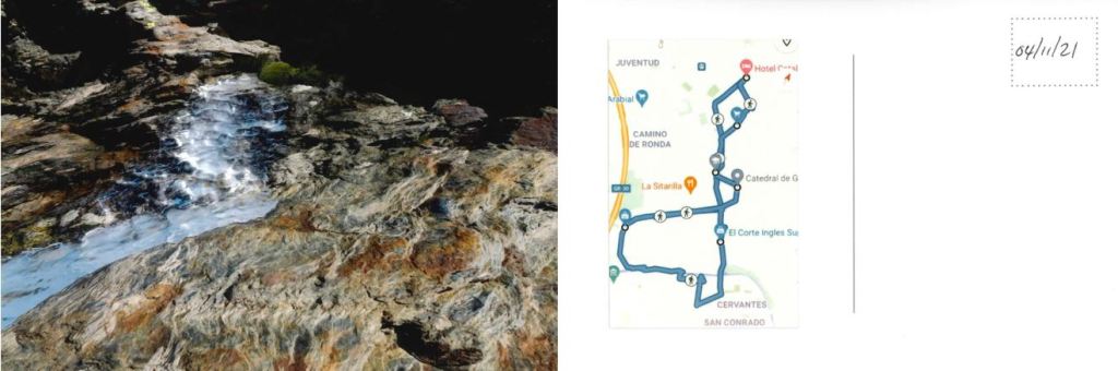 Traditionally there would be a short hand written message on the back of the postcard – I made the conscious effort to not write anything as I don’t want to influence the viewer by my choice of words or how I’ve written something – but you do have a map of where I walked (yes genuine map of where I walked when I went away, I did ALOT of walking. It’s the best way to explore a place!). The date was when the photo was taken to substitute a stamp – another thing that has almost died out due to the lack of letters being sent.